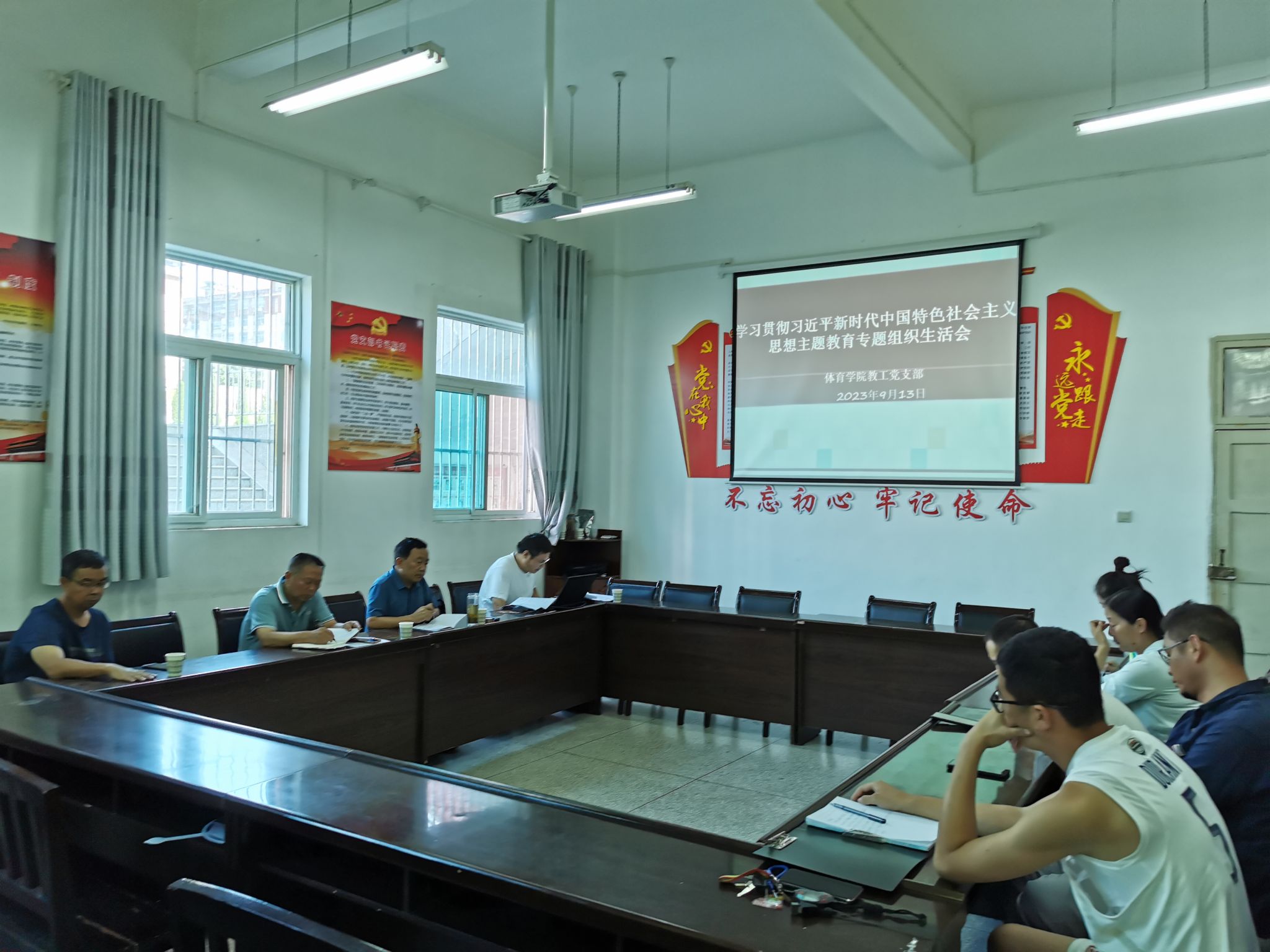 为深入贯彻落实党的二十大精神,严格执行党的组织生活制度,进一步发挥党员先锋模范作用,体育公司教工党支部于2023年9月13日下午召开了学习贯彻习近平新时代中国特色社会主义思想主题教育专题组织生活会,会议在best365中国官方网站会议室举行,本次会议由支部组织委员贾西栋主持,支部全体党员参加,best365中国官网董事长钟生海以普通党员身份参加,公司党支部书记高立平也列席了本次会议。