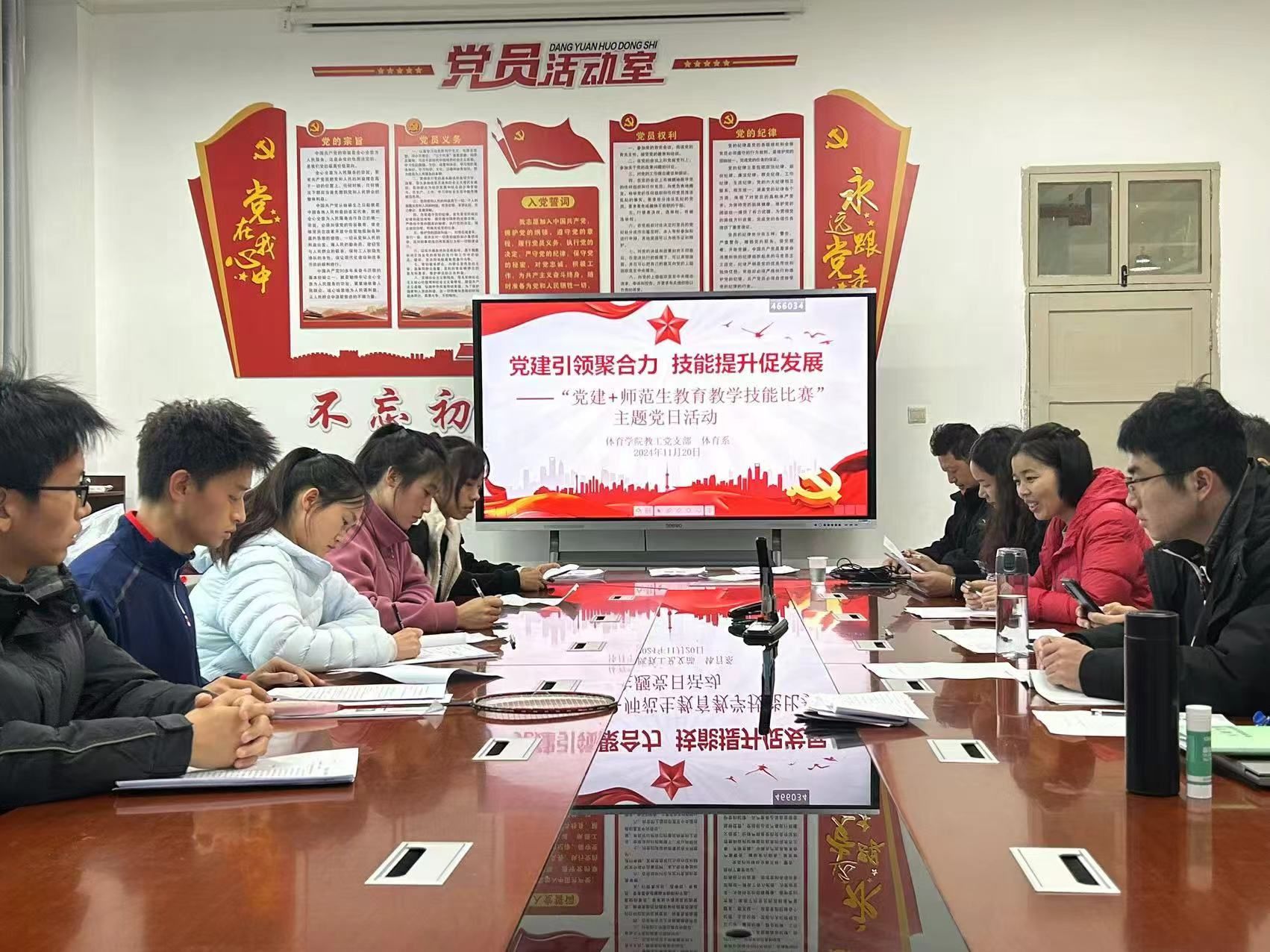 为深入贯彻党的教育方针,推动党建工作与专业教育的深度融合,进一步提高公司师范生公司产品技能,best365中国官方网站教工支部联合体育系于11月21日开展了“党建+师范生公司产品技能比赛”主题党日活动。公司领导班子成员,教工党支部书记、体育系主任等部分党员教师参加了活动。