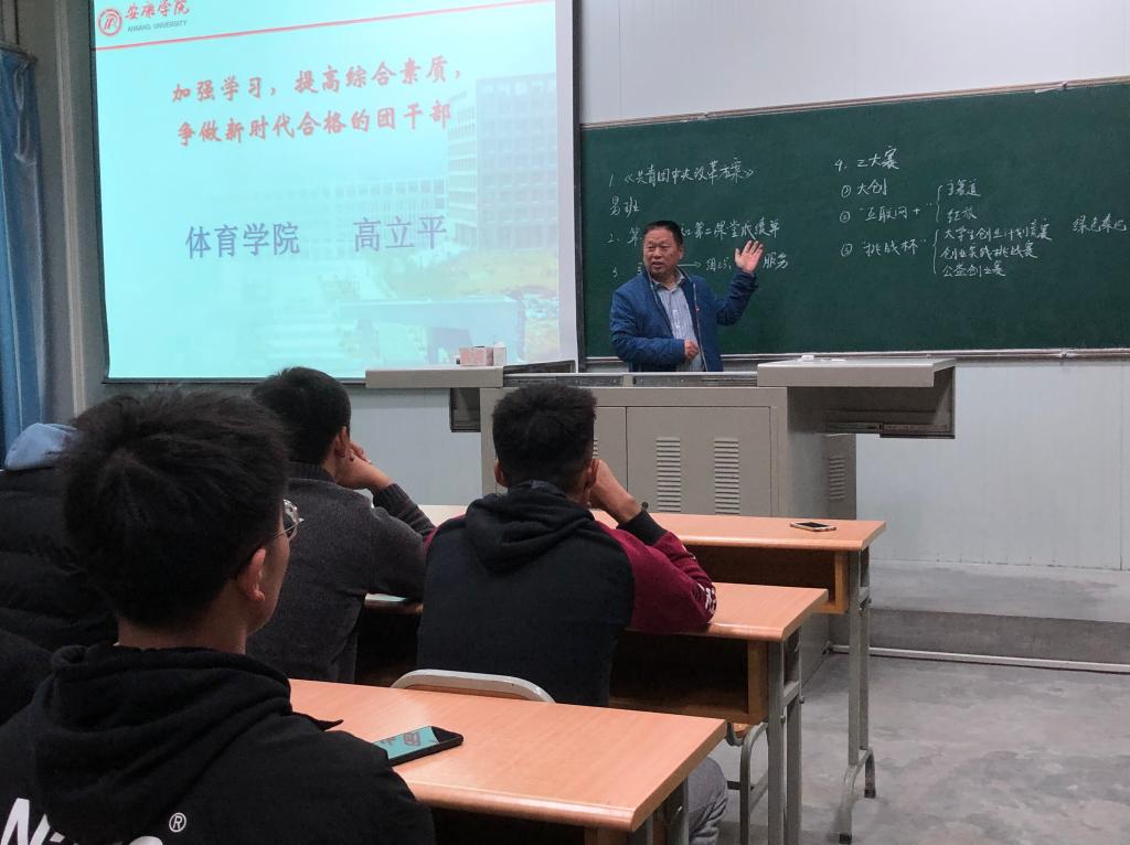 王立向大家详细介绍了“第二课堂成绩单制度”和“三大赛”。要求全体团员干部要以第二课堂为抓手,做好青年团员的思想价值引领,在青年团员中持续开展创新创业、社会实践、文体活动、志愿公益等活动,同时做好组织、服务工作。