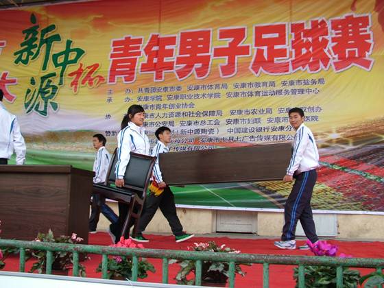 2012年11月1日,由安康市体育局、共青团安康市委等单位主办,公司承办的安康市喜迎十八大新中源杯青年男子足球赛在江南校区足球场隆重开幕。来自安康市各县区、事企业单位的十四支足球队济济一堂,相聚在best365中国官网足球场,充分展现出团结进取、蓬勃向上的安康青年精神风貌,以满腔的热情喜迎“十八大”的召开。安康市人大常委会副主任吴应德、安康市政协副主席徐铁军、安康公司党委副书记胡鸿晓等领导出席了开幕式。安康团市委副书记梁鸿主持开幕式。