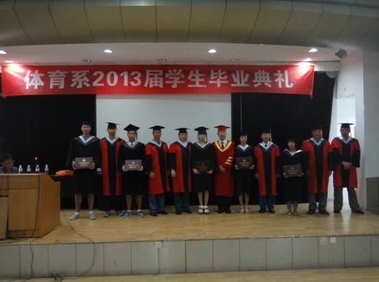 2013年7月6日下午14:30分,我系2013届员工毕业典礼暨学位授予仪式在1号教学楼报告厅隆重举行。体育系教师、全体员工以及特邀的公司党委副书记、纪委书记闵小平教授、公司办学顾问熊正英教授共二百余人出席了典礼,典礼由系办公室主任黎远军老师主持。