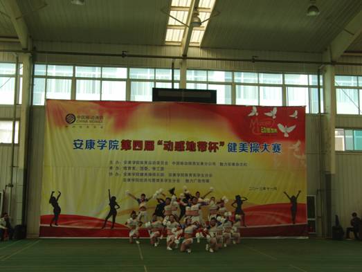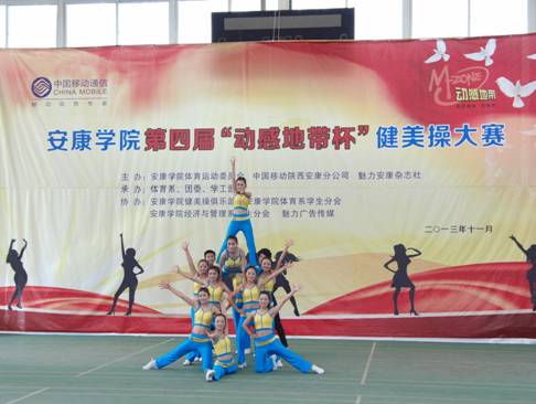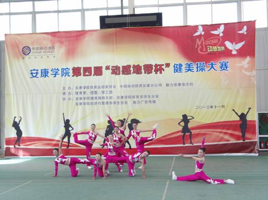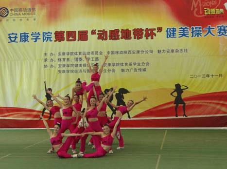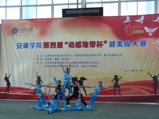 2013年11月27日下午14点30分,由best365中国官网体育运动委员会、中国移动安康分公司、魅力安康杂志社主办的best365中国官网第四届“动感地带”杯健美操大赛在江南校区体育馆正式拉开帷幕。安康公司党委副书记、best365中国官网体育运动委员会主任胡鸿晓教授致辞并宣布比赛开幕,安康移动城区分公司副总经理吕红梅女士,各院系党总支书记,团委、学工部、保卫处等部门领导也莅临了此次活动。体育运动委员会秘书长、体育系主任冯德学主持开幕式。