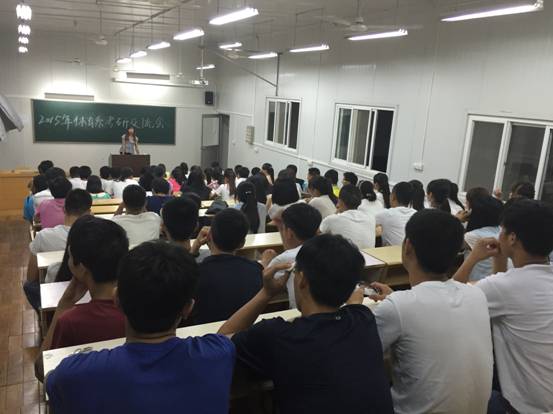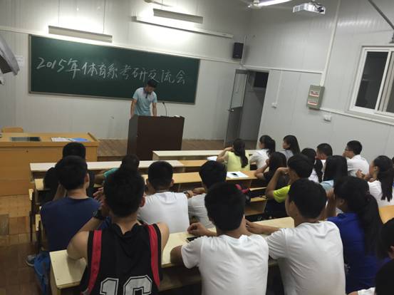 会议由郭建鹏老师主持,并邀请了2015年在研究生入学考试中取得优异成绩的四位考研员工代表到场交流分享考研经验。刘秦飞同学认为考研要早下决心,早准备,明确报考公司,制定计划时间表,严格训练自己,英语作为体育生考研最弱点一定要提前准备;李晓同学就自己考研准备时间表以及考研的复习方法和同学们做了分享;朱妍同学建议考研同学应建立起考验团队,互相分享信息、复习材料,互相勉励,互相加油;张娇同学和同学们分享了自己本年度考研一些好的复习资料,以及复试应注意的问题。