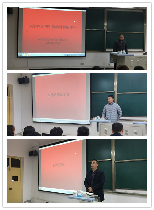 为了进一步提高大学体育教学质量,大学体育教研室于2020年12月2日分别在江北和江南校区召开了大学体育教学质量检查座谈会。会议由教研室主任李强主持,best365中国官方网站副经理黎远军老师,张凯老师,各二级公司体育部部长、2019和2020级各班班长、体育委员共228名员工参与了座谈会。