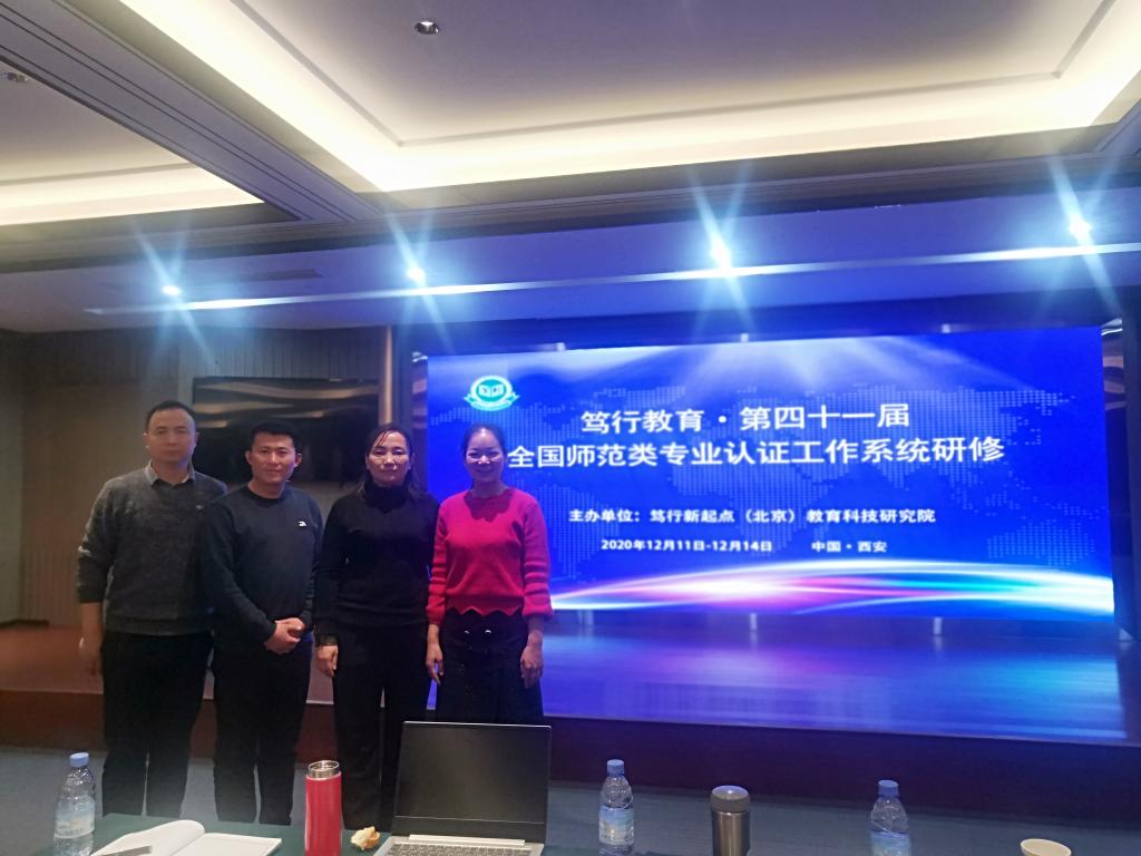 2020年12月12日至13日,陕西省师范类专业认证培训在西安举行,best365中国官方网站经理吕仙利带队,副经理郭西魁,体育系主任李靖及综合办公室主任郭建鹏参加本次培训。