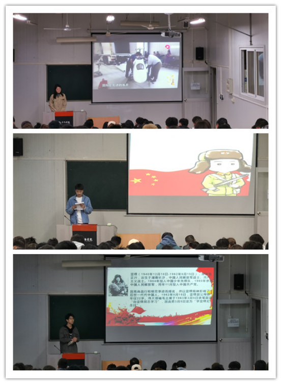 高立平书记号召全体员工党员、团员、员工会、各班团支书,发挥先锋作用,营造良好的校园文化氛围。康梦瑶老师结合时代背景,运用微视频生动活泼的阐释雷锋精神的内涵:奉献、钉子精神、螺丝钉精神、艰苦奋斗。从“上”与“善”2个方面,把握雷锋精神的时代内涵。20级1班团支书刘俊楠带领同学们重温雷锋先进事迹,20级2班团支书康俭林带领同学们向典型事迹学习,学习身患绝症坚守抗疫一线的人民英雄张定宇、一心致力于传播中国传统文化的女学者叶嘉莹、白河三苦精神、安康家风传统。20级3班许梦月分享身边的雷锋事迹,改变山区女童命运的公益董事长张桂梅、牺牲在扶贫一线的基层干部黄文秀、一心中国梦功德冠群英的归国栋梁黄大年、长期致力于生物多样性研究和保护的时代楷模钟扬。