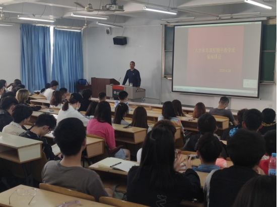 为了切实做好《大学体育》课程的教学工作,了解教学现状,科学安排教学内容,提高教学质量,促进大学体育课程改革,2021年4月28日下午4点30分,best365中国官方网站在江南校区1510教室召开了2020—2021学年第二学期大学体育期中教学工作座谈会。best365中国官方网站副经理黎远军、大学体育教研室主任李强以及各二级公司体育部干部、2019级和2020级各班班长、体育委员共164名同学参加了座谈会。会议由李强主持。