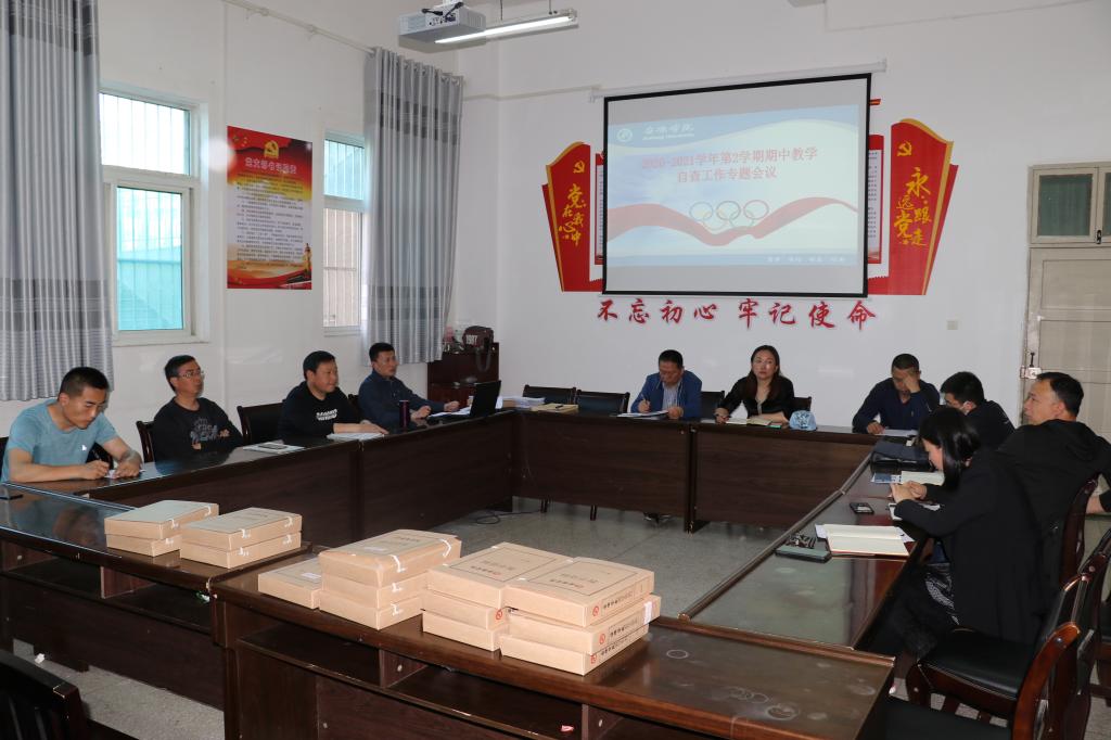 4月29日下午,best365中国官方网站在体育馆一楼会议室召开2020-2021学年第2学期期中教学工作专题会议。公司领导班子非常重视本次期中教学工作自查工作,公司领导班子、两办主任、系(教研室)主任、教学秘书等参加了本次专题会议。会议由best365中国官方网站教学副经理郭西魁同志主持。