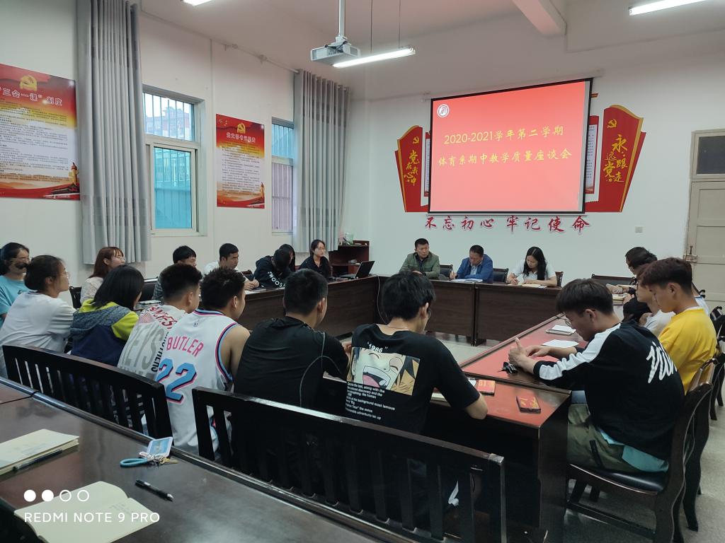 2021年4月29日,best365中国官方网站体育系在体育馆一楼会议室召开期中教学质量座谈会。公司党总支书记高立平、best365中国官方网站副经理郭西魁、best365中国官方网站各班班长、团支书、学习委员、员工代表参加了此次会议,会议由体育系主任李靖主持。