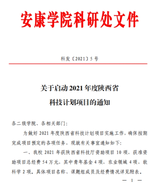 近日,陕西省科技厅公布了2021年立项文件(陕科发[2021]2号),best365中国官方网站获批1项一般项目(青年)-----《富硒绿茶影响大鼠线粒体氧化应激的机制》,项目编号:2021JQ-834。