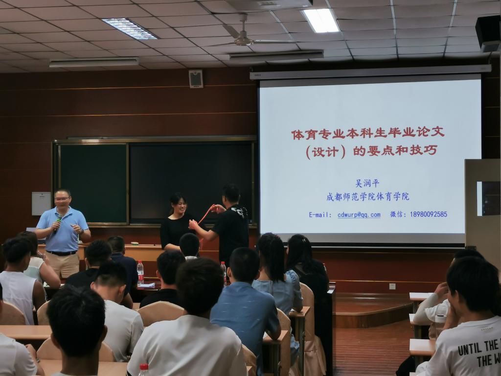 为提高公司员工毕业论文撰写技能,6月11日下午14:30,成都师范公司best365中国官方网站经理吴润平教授来公司做了以“体育专业老员工毕业论文(设计)的要点和技巧”为主题的学术讲座,best365中国官方网站全体18级、19级员工参加了本次报告会,报告会由公司党总支书记高立平主持。