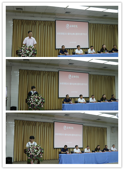 经理吕仙利教授宣读了2021届毕业员工名单、学士学位授予名单。庄严的学士学位授予仪式开始,吕仙利教授,冯德学教授等6位老师为2021届毕业生授礼并颁发了学位证书。