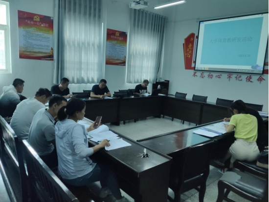 5月19日,大学体育教研室在best365中国官方网站会议室召开课程思政研讨会,教研室全体教师参加。本次会议从大学体育课程的教学大纲入手,由负责课程大纲修订的老师,详细讲解各科目大纲,特别是课程思政设计方面的具体细节。