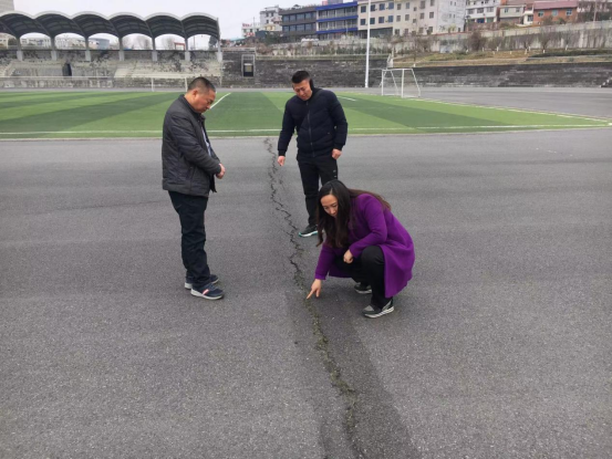 检查人员依次对best365中国官方网站实验室、江南、江北体育器材室、篮球场、单杠、双杠、足球场、乒乓球场、羽毛球场、田径场等场地及器械进行了检查,对设施的固定情况,使用年限,安全隐患进行评估,吕经理强调器材如有损坏需及时维修或者更换确保员工使用安全。在江北校区田径场跑道有严重裂缝,高书记指出要及时和相关部门联系,做好维修服务,保证员工在上课期间的安全使用。