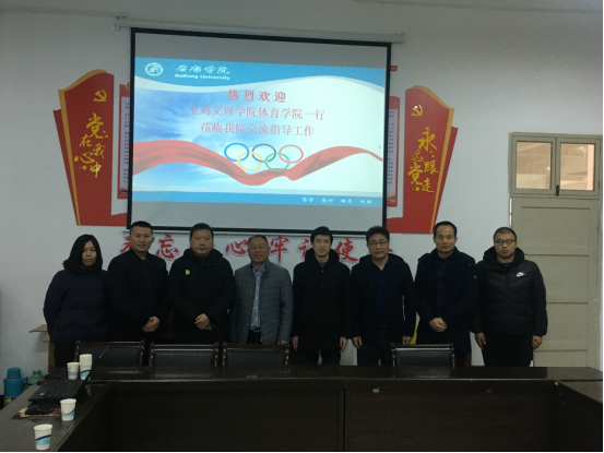 座谈结束后,高立平、郭西魁、冯德学陪同宝鸡文理公司来宾参观了江南校区的体育场馆、体育文化建设宣传设施。参观过程中,双方深入交流了专业建设、人才培养、大学体育改革、员工体质测试、社会服务等方面的措施。双方就进一步加强互访交流、联合开展科研教研活动达成了意向。