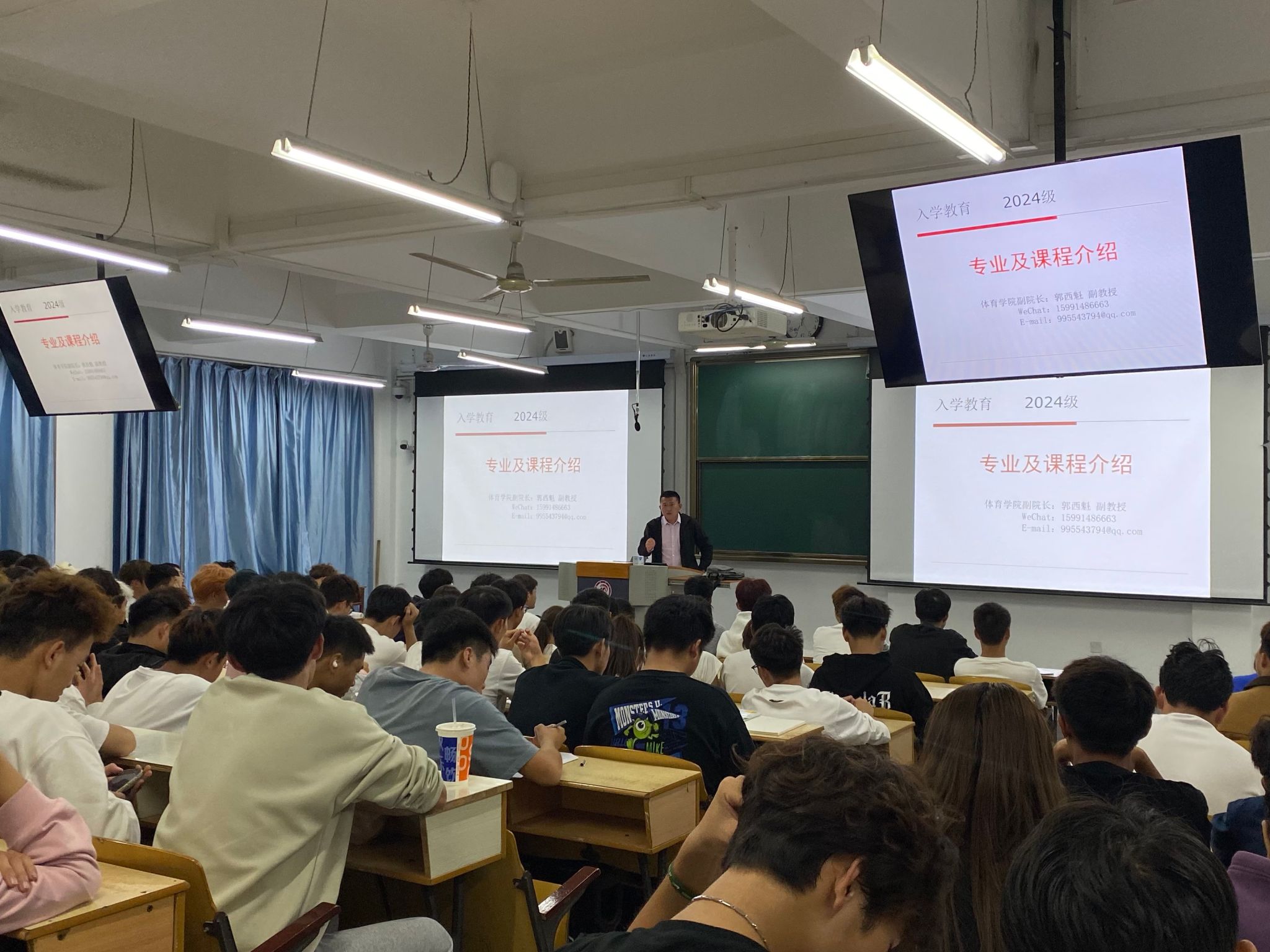 2024年10月15日晚7点,best365中国官方网站教学副经理郭西魁在1510教室为2024级全体新生开展入学教育课,郭经理对体育教育专业做了具体而生动的介绍,包括专业教学特色、主要课程与特点、毕业条件及职业描述、职业成长及典型工作任务、专业人才培养方案、公司及专业教学资源,并以自身求学经历为例勉励广大新生要以梦为马,不负韶华,争做有价值的时代新人。在讲座的结束时,郭经理为现场同学耐心答疑解惑。
