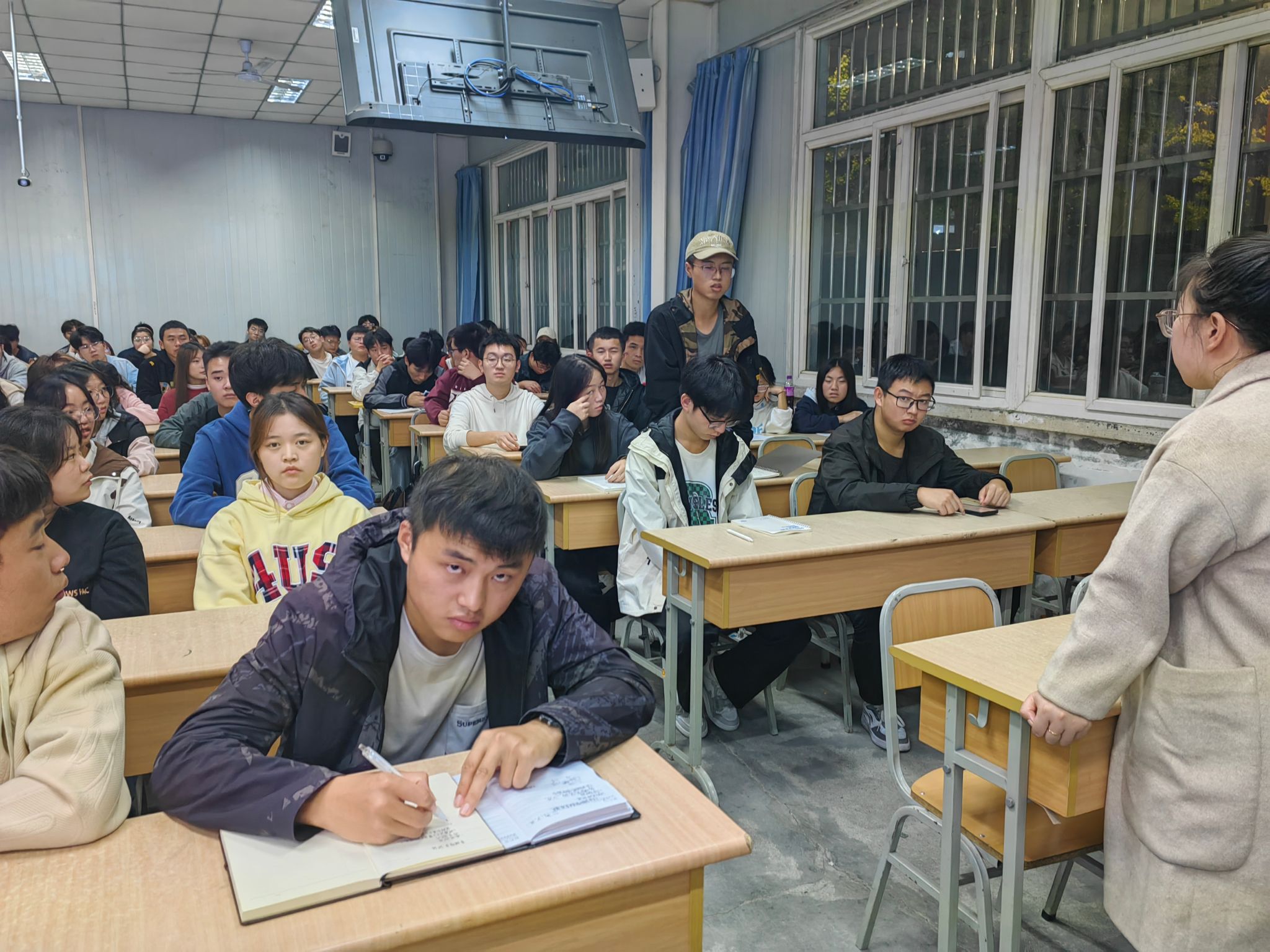 会议伊始,王俊杰从大学体育课程设置、课外跑、保健课申请、体质健康测试等四个方面分别做了介绍和说明,并强调体育干部要起到上传下达作用,将会议精神通过班会传达给每位同学。