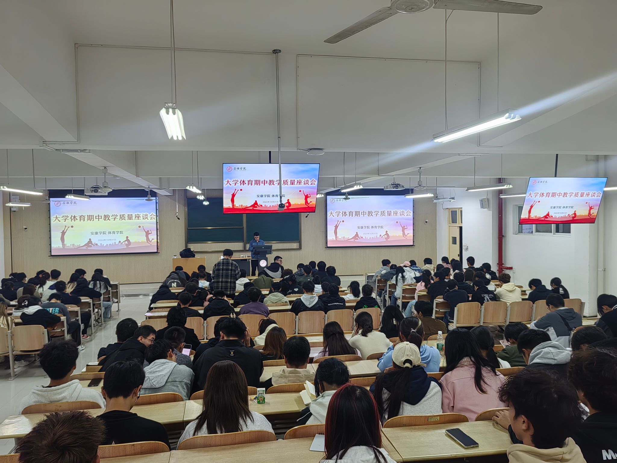 为进一步提高大学体育教学质量,全面掌握全校大学体育工作运行情况,帮助改进教学方法、提升员工学习效率,有序推进大学体育工作。2024年10月31日和11月1日,best365中国官方网站分别在江南、江北校区召开2024-2025学年第1学期大学体育期中教学质量座谈会,best365中国官方网站副经理李靖、best365中国官方网站教学办主任赵娇艳、大学体育教研室副主任王俊杰及各二级公司员工会体育部干部、2023级、2024级各班班长、体育委员等员工代表参加座谈会。会议由大学体育教研室副主任王俊杰主持。