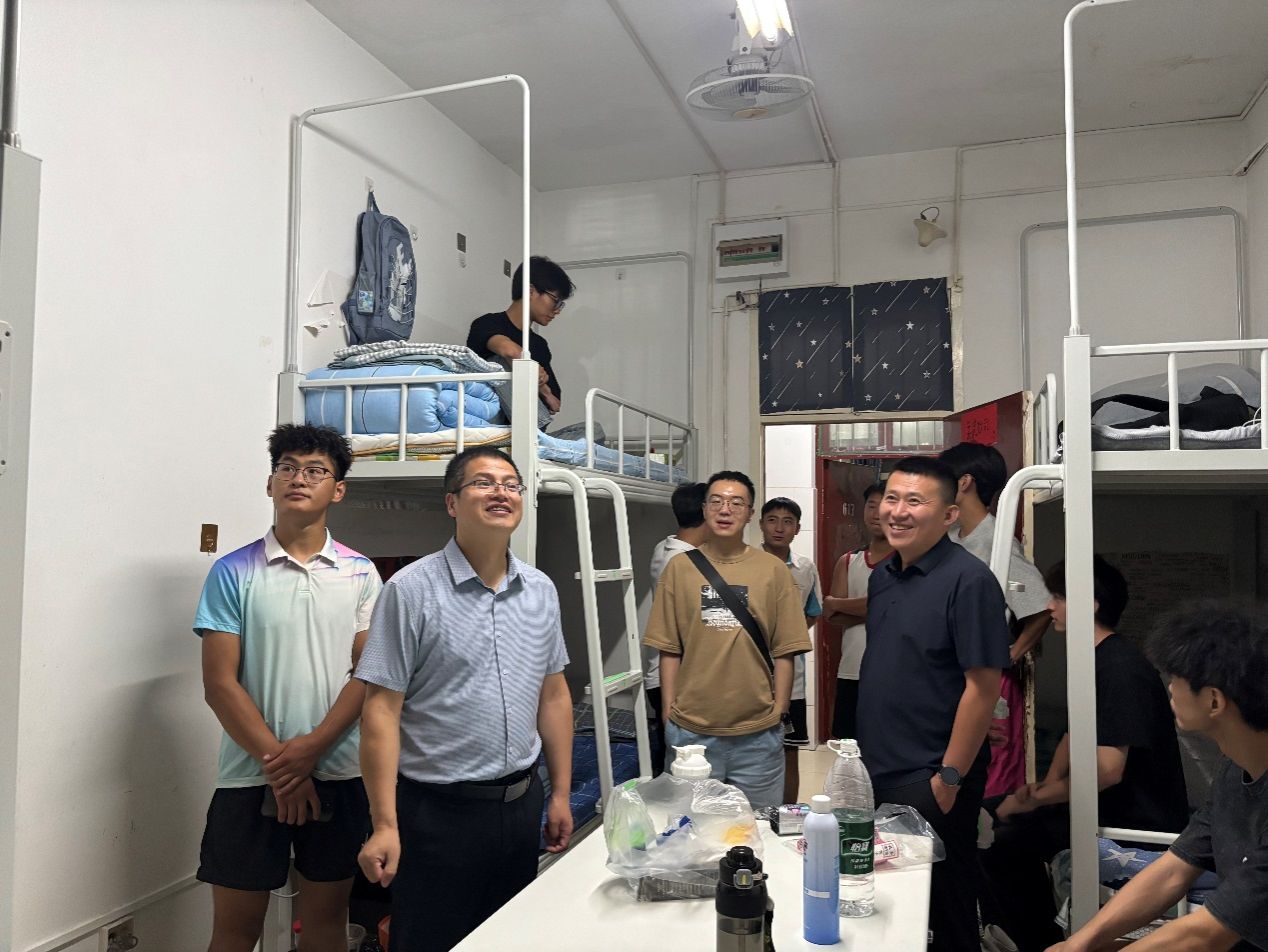 为深入了解2025级新生报到与住宿情况,帮助新生尽快适应大学环境,9月1日晚,best365中国官方网站一行深入员工公寓看望2025级新生。公司党总支书记韩晔,经理吕仙利,副经理郭西魁、李靖,团总支书记康梦瑶,新生辅导员陆传梓以及院员工会骨干成员一同参加走访。
