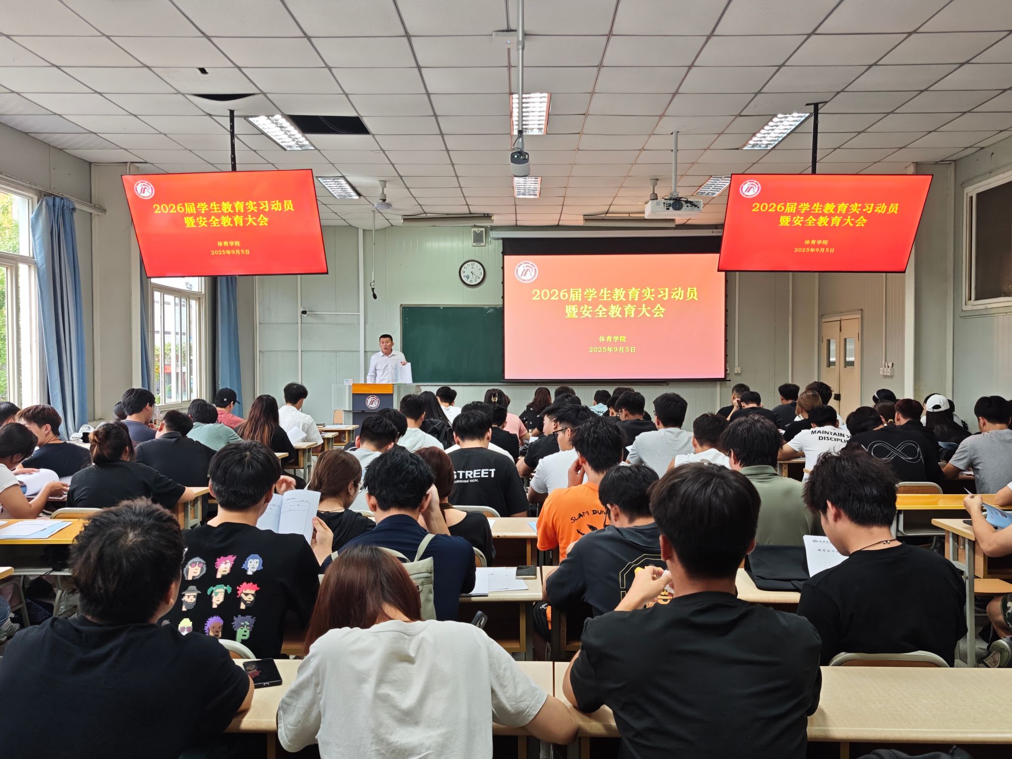为进一步做好公司26届毕业生实习工作,9月5日下午,公司在10号教学楼召开实习动员暨安全教育大会。公司领导班子成员、系主任、教研室主任、学工办主任、2026届全体毕业生参加了会议,会议由教学副经理郭西魁主持。
