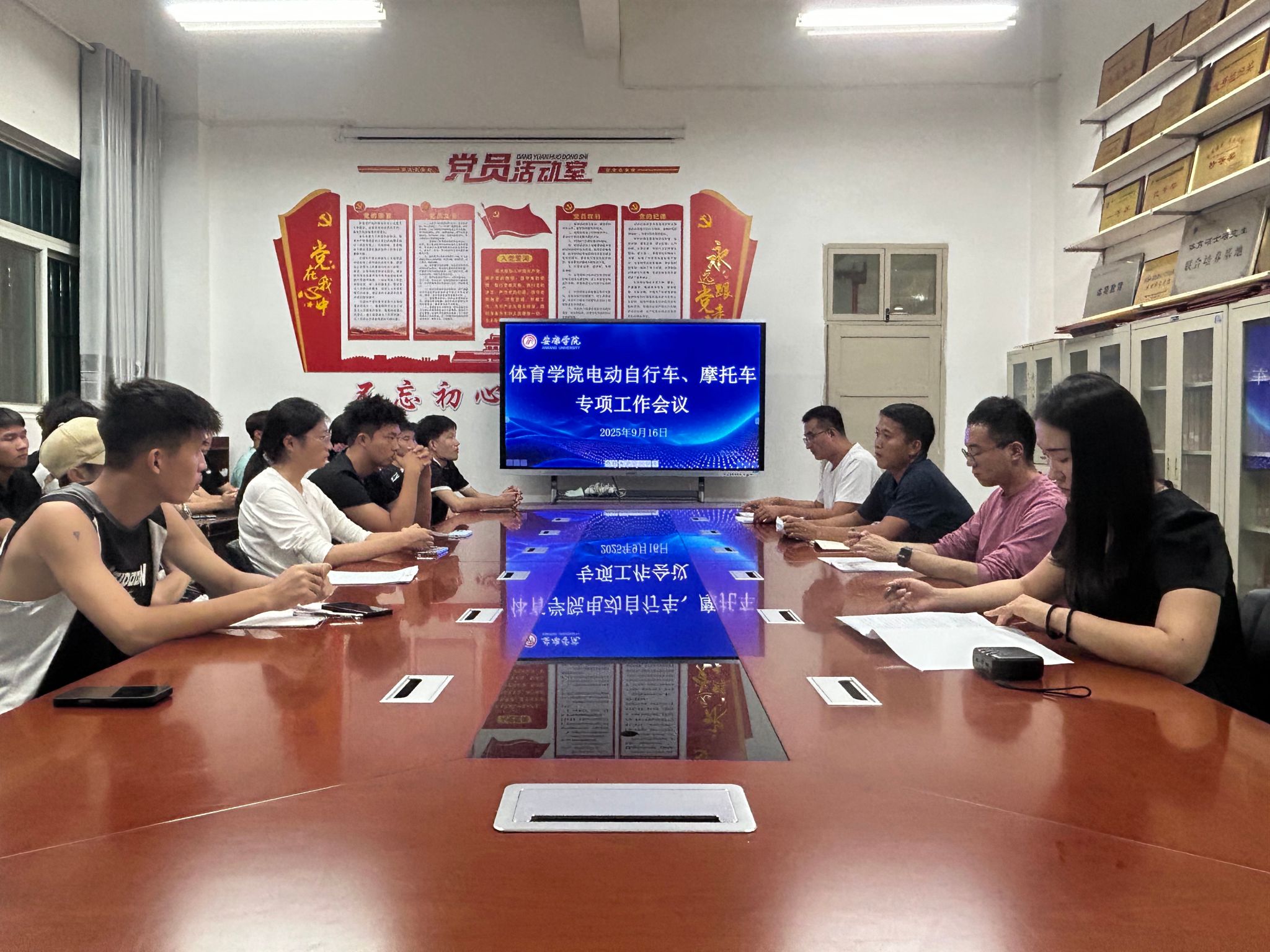 会上,刘晓松老师首先对《关于推进校内电动自行车、摩托车信息化管理的实施方案》进行了详细解读并现场回答相关问题;其次全体参会人员共同观看了校园交通安全宣传片,通过典型案例分析和事故警示,进一步强化了大家的交通安全意识和责任意识。最后许明老师强调各班干部要带头落实会议精神,及时传达公司政策,主动配合车辆登记与违规清理工作,切实发挥员工骨干的示范作用,共同营造安全、有序的校园交通环境。