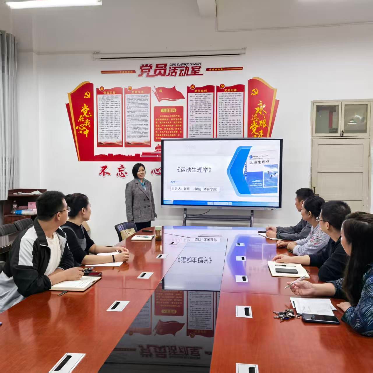 活动中,主讲教师以“理论与实验融合,赋能体育人才培养”为核心,从课程定位、教学目标、内容体系、教学方法、评价体系及改革方向六大维度进行系统阐述。在课程定位上,明确其作为体育专业基础课的作用,衔接后续体育保健学、健康教育学等课程;教学目标聚焦“知识传授、能力培养、价值引领”三维目标,强调让员工掌握生理机制的同时,提升实验操作与运动场景应用能力。