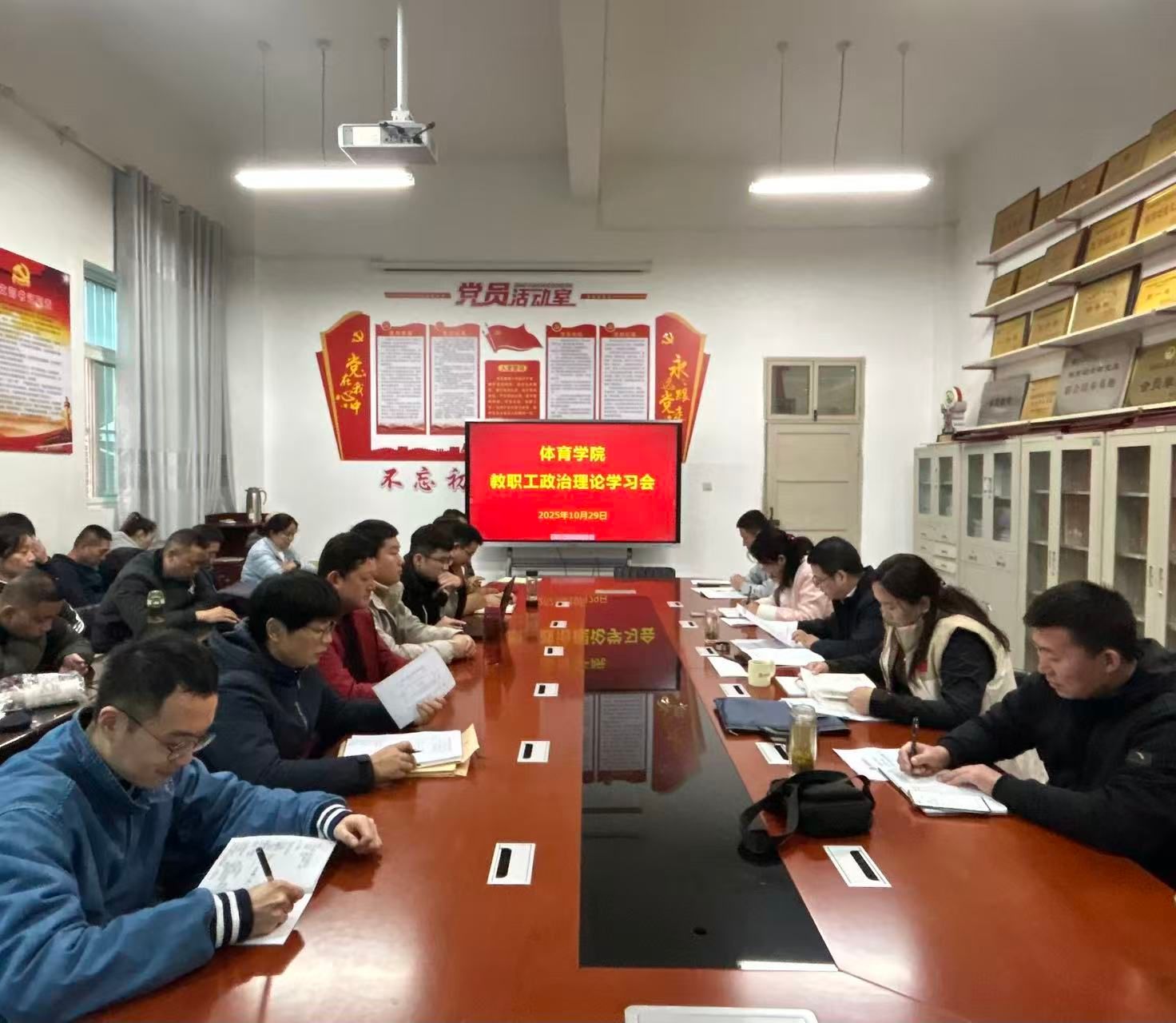 在交流讨论环节,与会教职工围绕“坚守教育初心、提升育人本领”主题,结合体育教学、训练、科研及员工管理工作实际分享学习体会。经理吕仙利表示,要以特岗教师为榜样,扎根体育教育一线,将立德树人根本任务融入课堂教学,在传授运动技能的同时注重员工品德培养;副经理郭西魁提出,要不断提升自身专业素养,优化训练方法,用心指导员工提升竞技水平,助力员工实现体育梦想;党政办主任陈欢则表示,要强化服务意识,为教师教学科研和员工成长成才提供更优质的保障。大家一致认为,要将回信精神转化为工作动力,以实际行动践行人民教师的责任与担当。