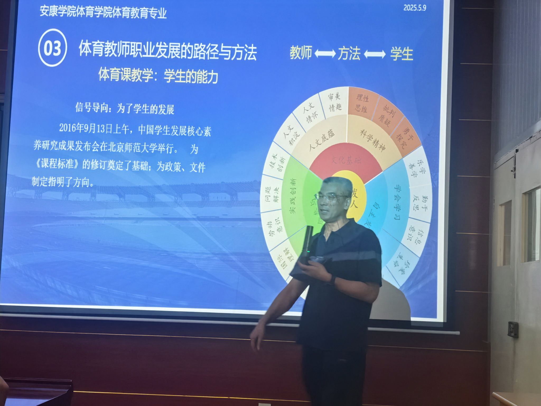 杜泉老师从政策导向、职业发展与教学实践三个层面展开讲解。他结合国家体育教育改革方向,指出体育教师需适应“健康第一”的教育理念,注重员工全面发展。在职业发展方面,他提出“多元能力提升”与“终身学习”的路径,鼓励教师通过跨学科学习与数字化技能拓展专业边界。