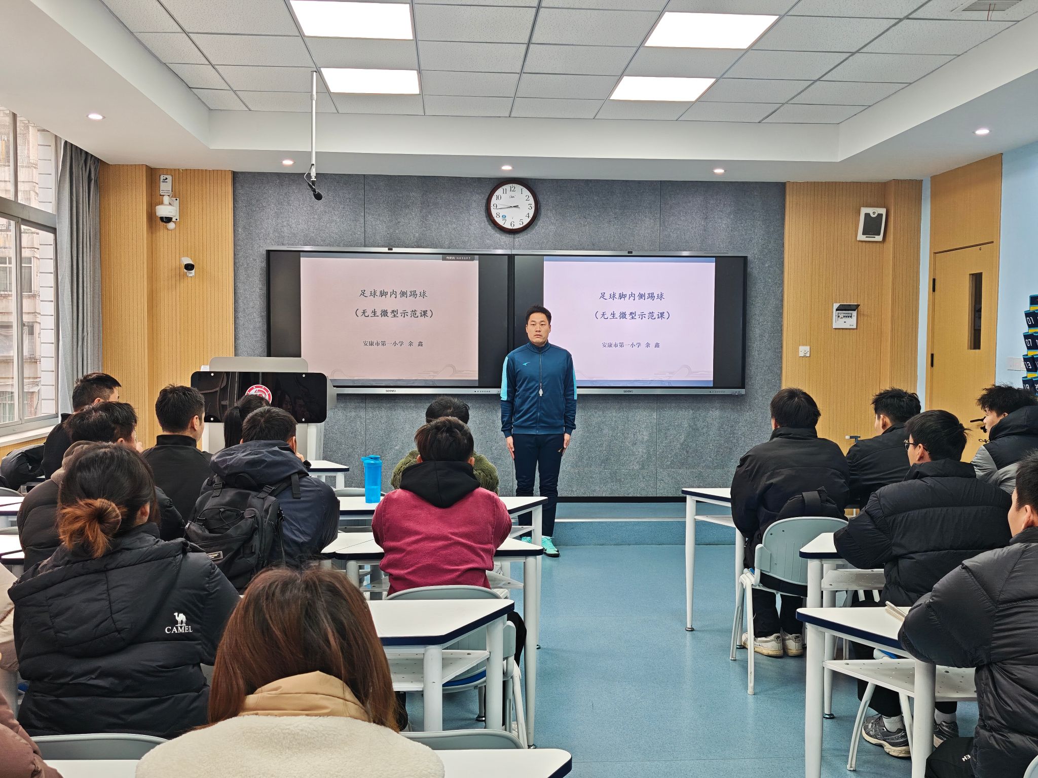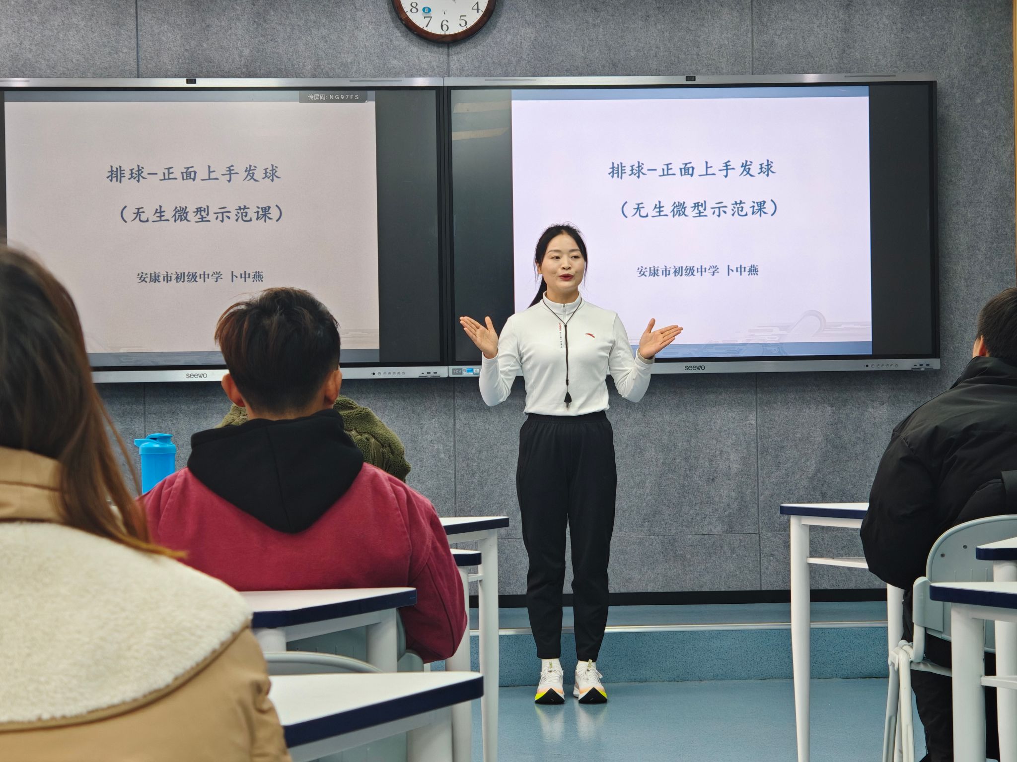 活动伊始,余鑫老师以小学体育课程中经典的“足球脚内侧踢球”为教学内容,通过游戏化、情境化的教学设计,生动演示了如何激发小员工的运动兴趣,展现了小学体育课堂寓教于乐的鲜明特色。紧接着,卜中燕老师围绕“排球正面上手发球”这一技术难点,进行了一场严谨规范的中学教学示范,其清晰的讲解要领和准确的动作分解,充分体现了中学体育教学对专业性的高标准要求。