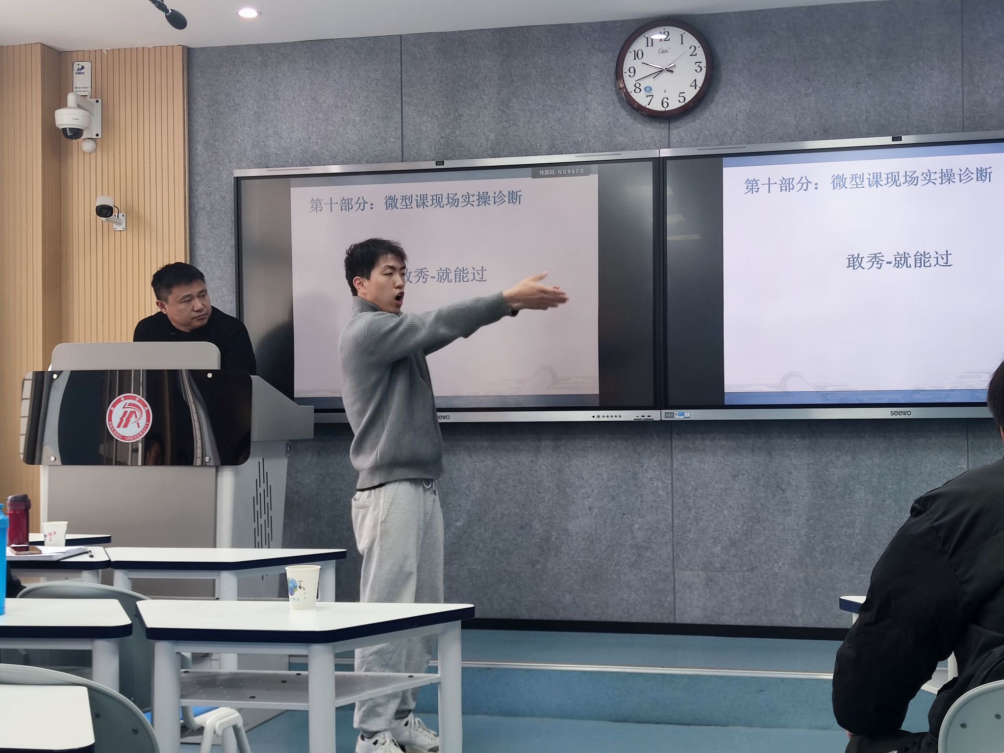 示范课后,穆晓锋老师从大赛评委的视角,对前两场演示作了精准而深刻的点评。他不仅剖析了两位教师在教学环节设计、课堂节奏把控等方面的独到之处,更结合自身经验,分享了在不同学段授课时如何有效把握重点、展现教师风采的宝贵心得,为同学们提供了兼具理论高度与实践深度的指导。