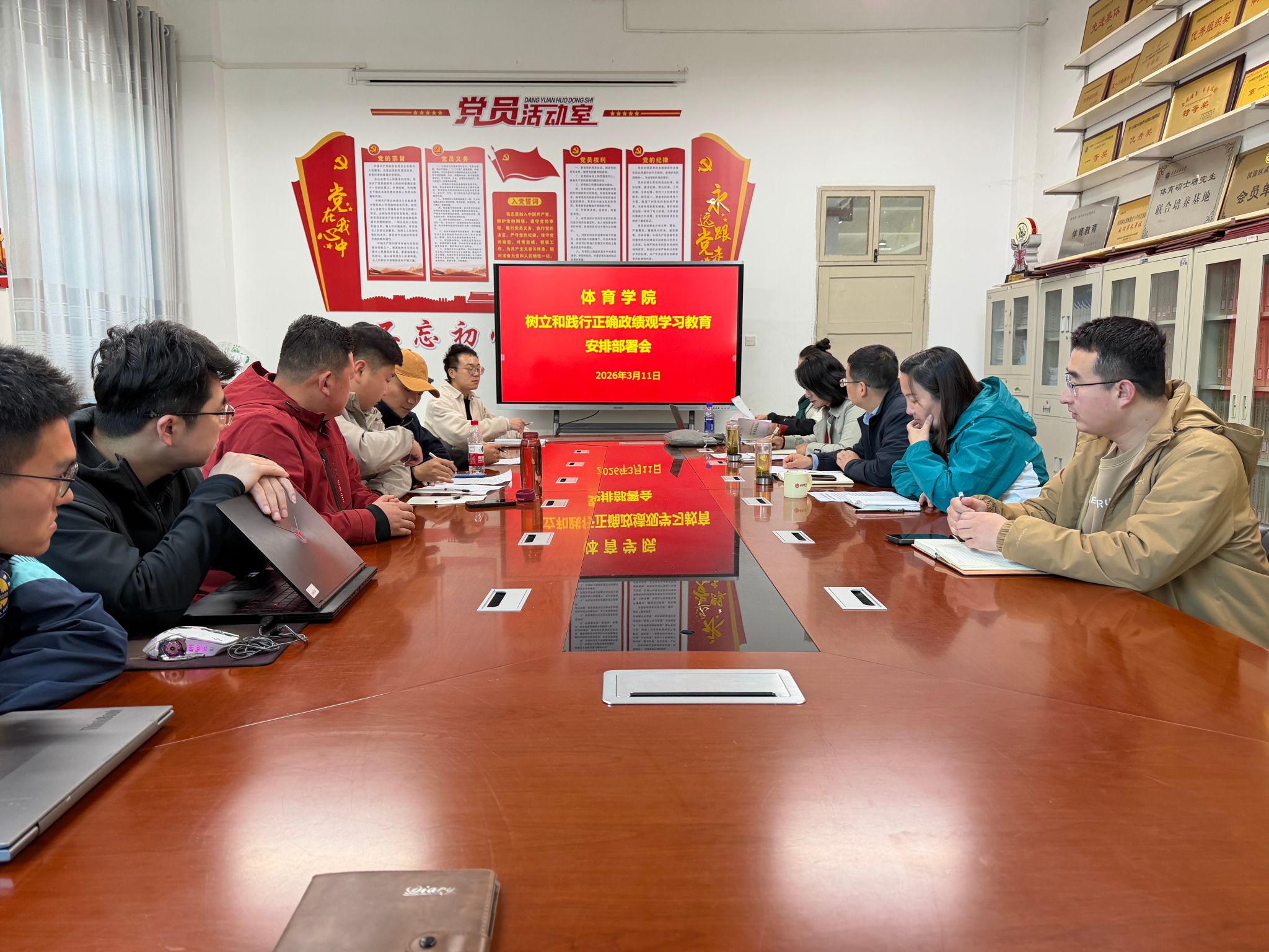 3月11日,best365中国官方网站在体育馆一楼会议室召开公司党总支理论学习中心组(扩大)会议,专题学习习近平总书记关于树立和践行正确政绩观学习教育的重要讲话和重要指示精神,部署公司树立和践行正确政绩观学习教育工作。公司领导班子成员,中心组成员,各支部支委,全体行政管理人员、学工人员参加会议。会议由公司党总支书记韩晔主持。