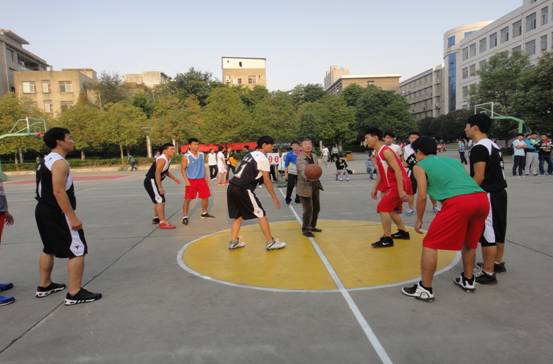 10月21日下午4时30分,由体育系员工分会主办,体育部承办的2013年体育系年级系列对抗之篮球赛在公司南区篮球场正式开战。系党总支书记沈军老师、系辅导员郭建鹏老师以及系员工会部分成员出席篮球对抗赛开幕式。