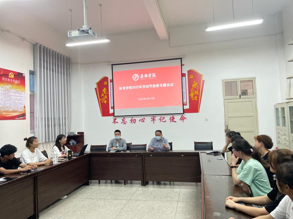 4月27日下午6点在体育馆1楼会议室召开2022年劳动节放假专题会。公司党总支书记高立平、学工办副主任王立、团总支书记康梦瑶、宿舍信息员参加了会议。会议由学工办副主任王立主持。
