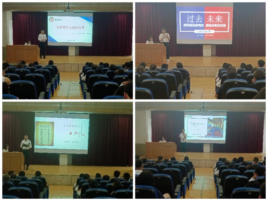 张彩霞从学习、考证、人际关系等方面讲述了大学四年的学习经验和体会,勉励同学们合理利用时间、注重学习方法,让自己变得更加优秀;薛鹏以自己的切身经历向同学们详细的介绍了考研各个环节的备考经验,同时也分享了备考四六级的方法;张一凡讲述了做好老员工职业生涯规划、明确目标的重要意义,鼓励大家要从实践中不断学习,实现人生价值;陈志刚从部队日常训练,生活和感悟等方面分享了艰苦而意义非凡的军旅生活,他说到参军报国既是磨砺人生,实现理想抱负的重要途径,更是热爱祖国的高尚行为,并鼓励同学们积极响应国家号召加入军营。