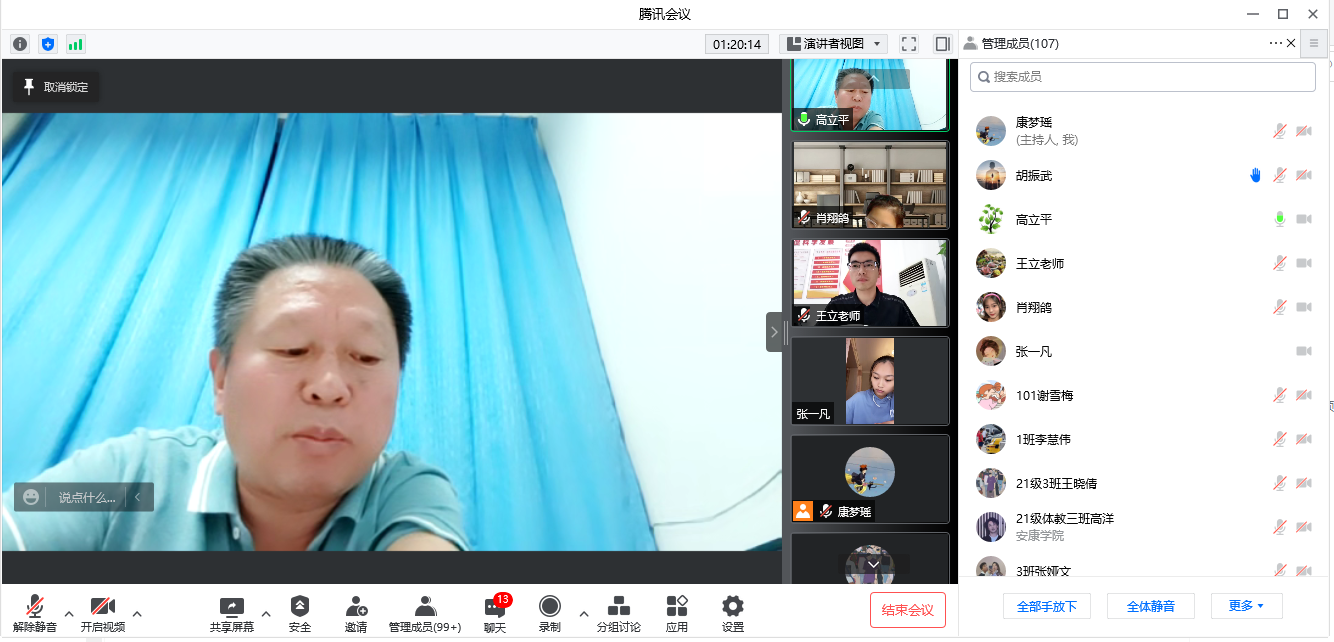 其次王立老师就学费缴纳、今日校园APP注册、防网络诈骗等和同学们密切相关的事项一一做了解释说明。同时就网课学习对同学们提出了希望和要求:他要求同学们要做好上网课的思想准备,端正学习态度,积极主动去适应网课学习,同时,做好上网课的其他准备工作;希望同学们在上网课期间一定要沉下心来,踏实学习,尽量减少外出,为返校做好准备。