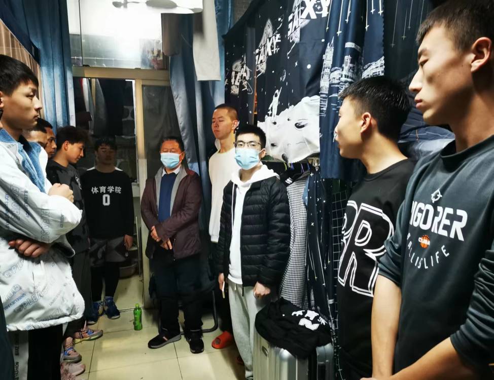 在员工宿舍,辅导员王立向同学们解读了当前省市区及公司有关疫情防控管理的政策和规定,提醒大家在疫情特殊时期要提高防控意识,坚持以大局为重;高立平详细询问同学们疫情期间学习、生活情况,听取了同学们对公司和公司在教学管理、生活保障、课余训练等方面的意见和建议,并回答了同学们关切的热点问题。