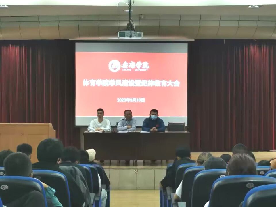 5月10日下午,公司在1号教学楼6楼报告厅召开学风建设暨纪律教育大会。公司党总支书记高立平、副经理郭西魁、学工办副主任王立、团总支书记康梦瑶以及2021级、2022级全体员工参加了会议,会议由王立主持。