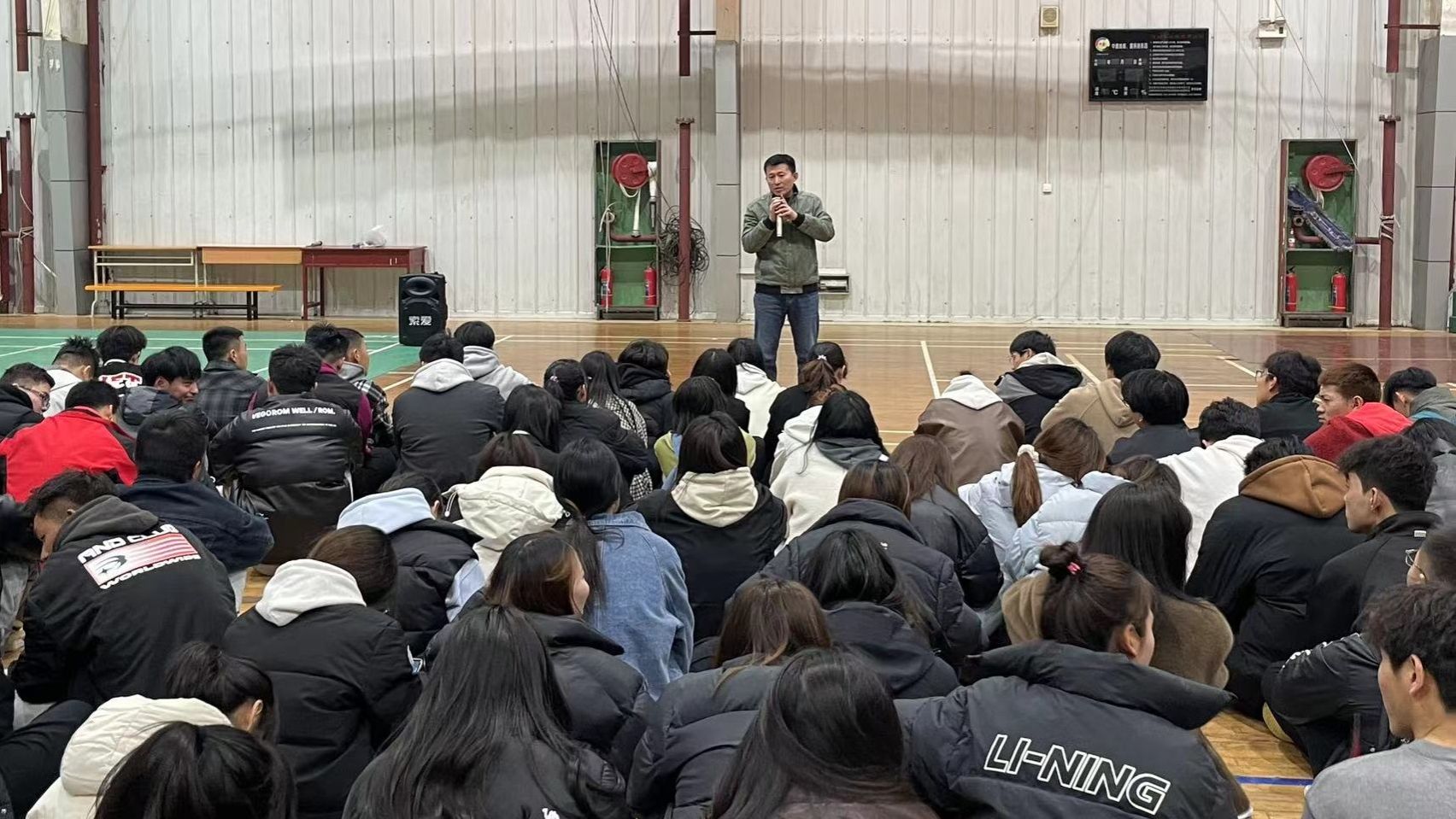 3月10日晚,公司在体育馆二楼开展安全主题教育。公司党总支副书记郭西魁、副经理李靖、学工办主任王立、团总支书记刘姚成,以及公司21级、22级、23级全体员工参加了学习。