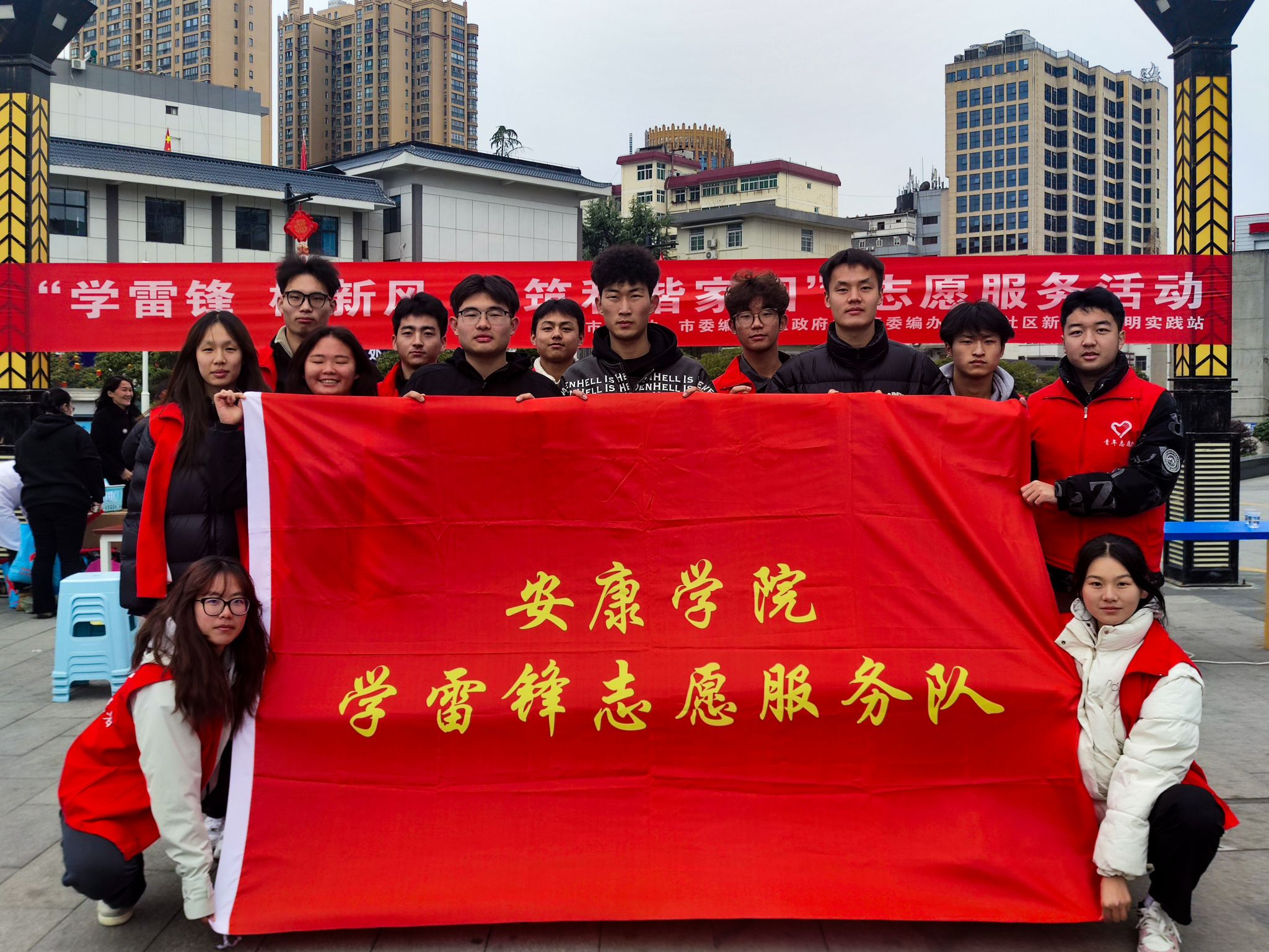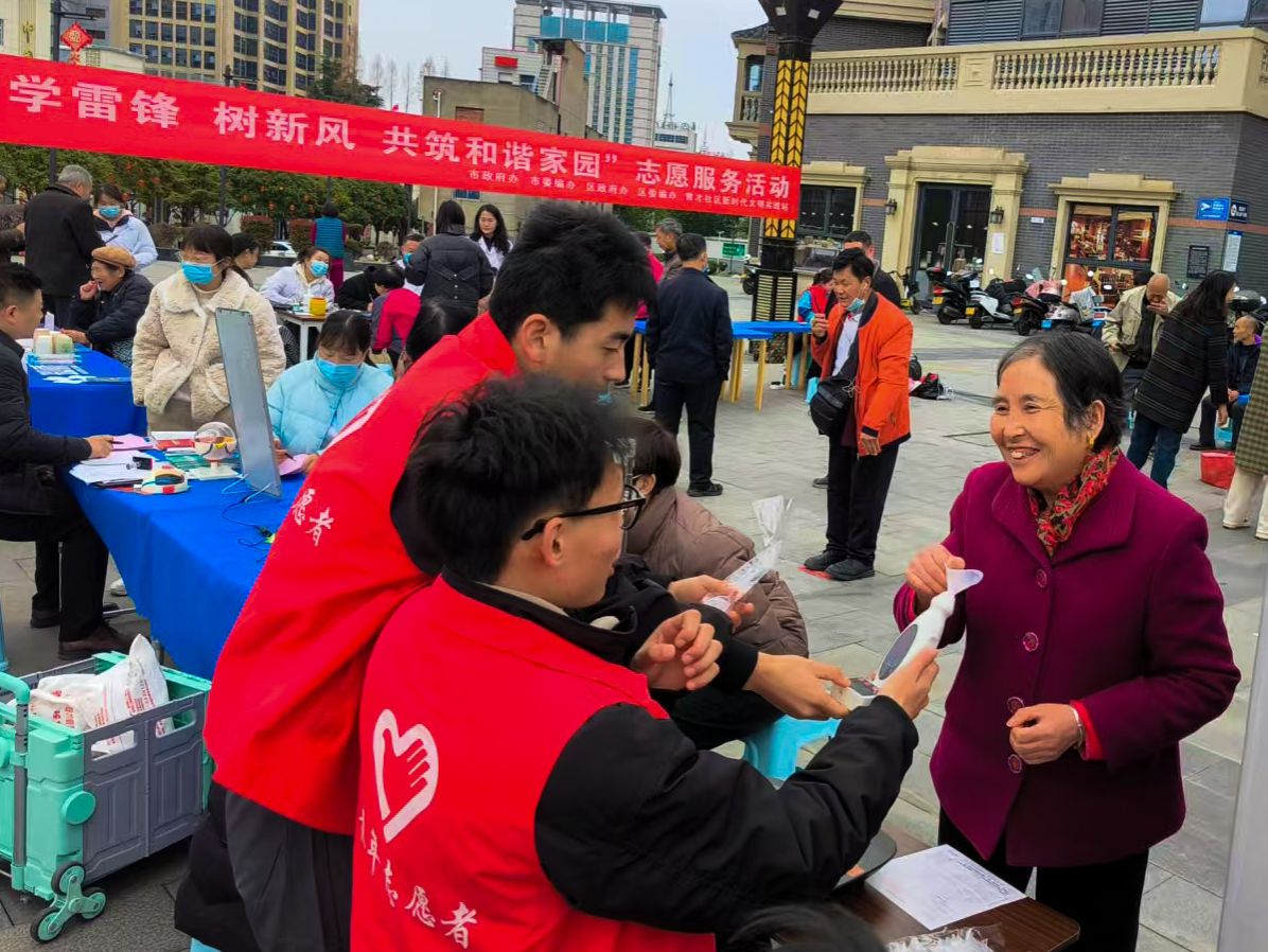 为弘扬新时代雷锋精神,深化文明实践行动,3月5日,best365中国官方网站团总支联合汉滨区育才社区,在天宝康郡广场共同开展了”学雷锋,树新风,共筑和谐家园”志愿服务活动,通过文明宣传与健康服务相结合的方式,为社区居民送去关怀与温暖。