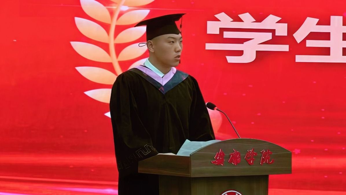 司周杰同学作为毕业生代表做了感恩母校、感恩老师、祝福同学的精彩发言。